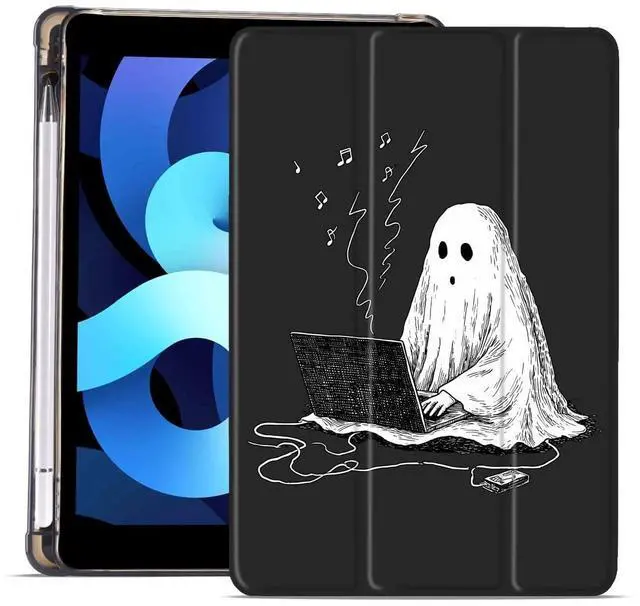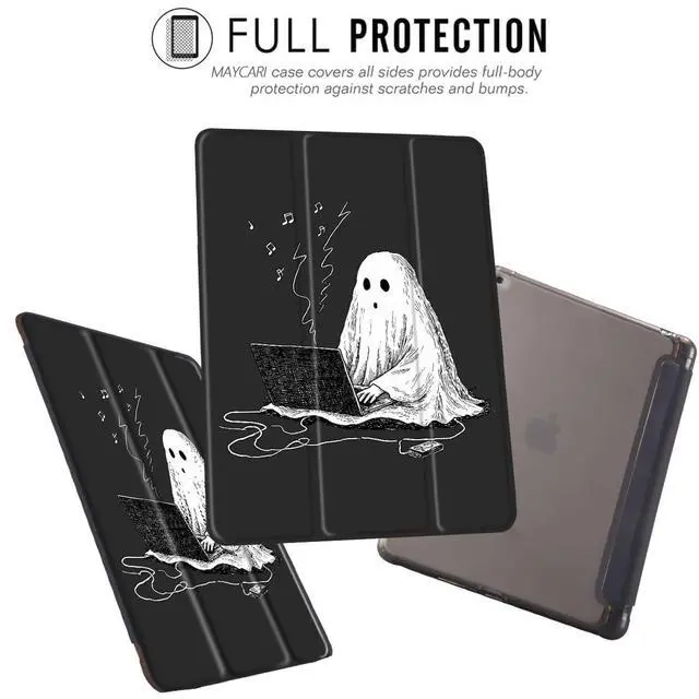 MAYCARI Halloween Case for iPad 10.2 inch 2021/2020/2019 with Pencil Holder, Original Cute Ghost iPad 9th/8th/7th Generation Soft TPU Back Protective Cover Shell, Auto Sleep/Wake Slim Shell