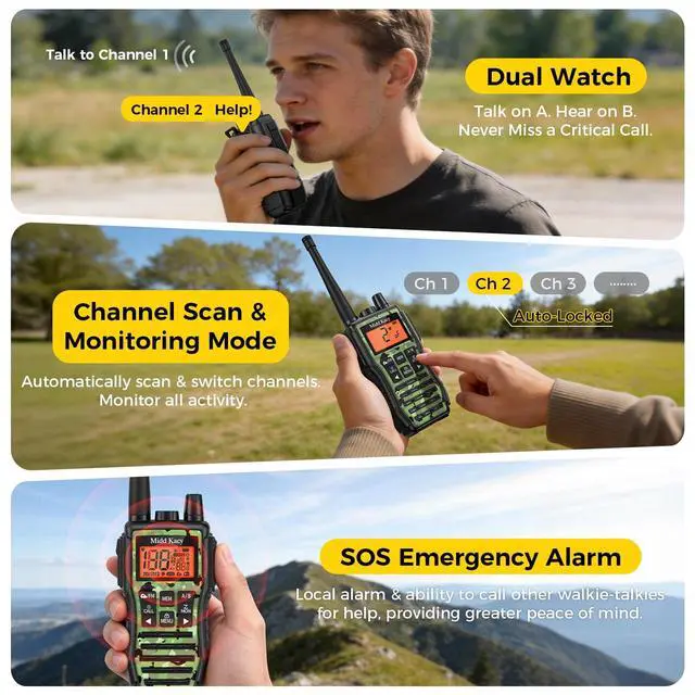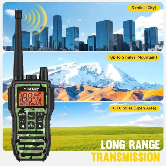 The added camouflage color makes it an ideal walkie talkie for hunters. ^^ NOAA Weather Band & AlertsNature can be fierce, but you can stay one step ahead. With NOAA Weather Alerts, MK208 2 way radio walkie talkies warns you of approaching severe weather, giving you vital time to prepare and protect your loved ones.