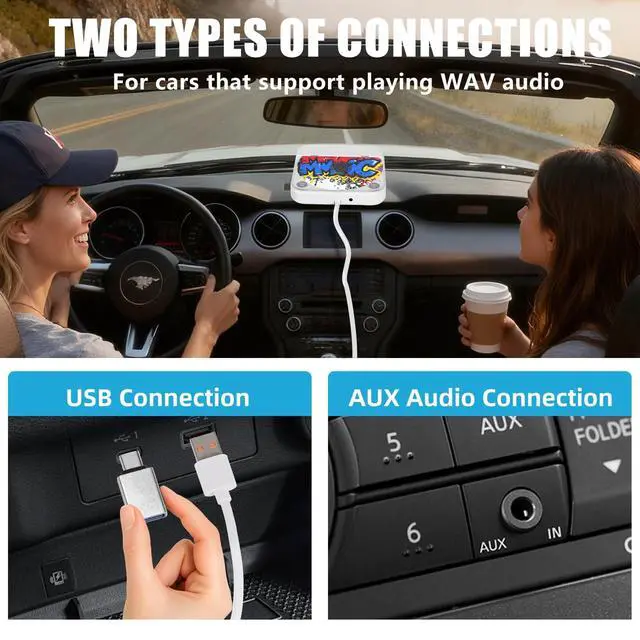 Our car CD player USB supports Android/non Android stereo (including Linux, Windows). This portable CD player can be easily paired with laptops, personal computers, smart TVs, and other devices in addition to cars. ^^ USB/AUX ConnectionThis car CD player offers USB 2.0 and AUX connectivity, making it easy to connect and plug and play. For WAV compatible vehicles, connect to the USB 2.0 port of the car stereo system, find the USB music playback icon, and start playing. For vehicles that are not compatible with WAV, using an enhanced configuration makes it easier to connect, simply plug in the USB power port and connect to the car using an AUX cable.