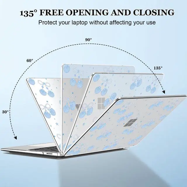 Edition) 2024 release (Model number: 2036). Please check that your laptop model is 2036 before purchasing (Note: different models correspond to different case), this case offers a precise fit that ensures full protection for your Microsoft Surface 13.8". ^^ High-Quality Material & ProtectionMade of hard plastic, unique 3D UV painting to add something different and colorful to your Microsoft Surface laptop 13.8 inch. Its built to last, offering long-term protection for your laptop while against scratches, bumps, and daily wear and tear, keeping your model 2036 Microsoft Surface laptop looking as good as new. ^^ Precise Cutouts & Easy Installation RemovalThe precise cutouts allow easy access to all ports, buttons, and features without removing the case. Our protective case has micro clips that securely fastens to your laptop, and snaps off with easy when needed. ^^ Ventilation & Heat DissipationFully vented for safe heat disbursement. The vent slots at the bottom of the case can easily keep your Laptop cool. The four rubber feet can safely keep your device stable. ^^ Complete BundleThe package includes 1 printed pattern top case, 1 clear bottom case, 1 matching color keyboard cover, 1 HD screen protector and 2 webcam cover.