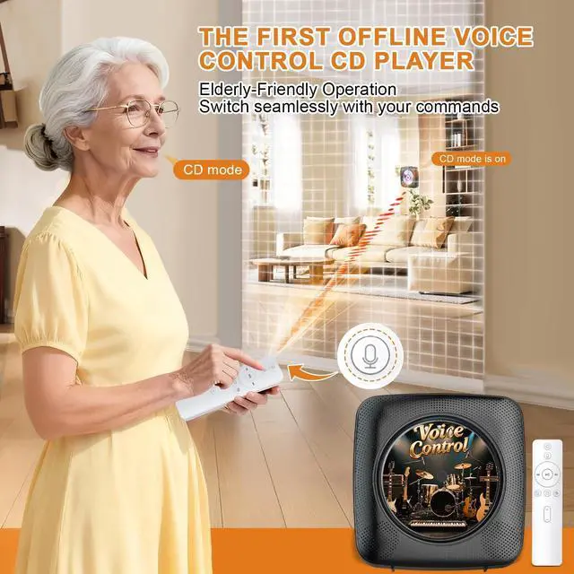The Easiest-to-Operate CD Player: Designed for inclusivityeven seniors with visual impairment can operate the Gueray CD player effortlessly via simple voice commands through the included remote. With local voice processing (no internet required), it offers reliable performance, quick responses, and enhanced privacy, creating a seamless listening experience for all ages and abilities. ^^ All-in-One CD Players for