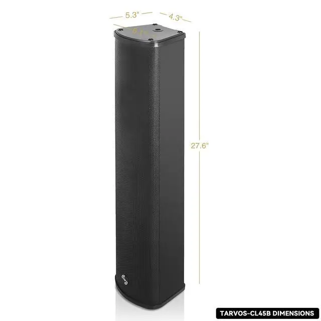 Sound Town 70V/100V 4x5" Weather-Resistant Column Array Passive Speaker, with IP55-rated Aluminum Enclosure, for Home & Commercial Installations, Indoor & Outdoor, Black (TARVOS-CL45B)The Sound Town TARVOS-CL45B column array speaker is engineered to deliver exceptional audio performance across diverse environments. With its four 5" woofers and 1" compression driver, this speaker provides 80W RMS and 160W program power at 8, offering clear and powerful sound that suits both indoor and outdoor spaces, from event venues to large open areas. Designed for compatibility with various professional audio systems, the TARVOS-CL45B features a built-in multi-tap transformer that supports 70V/100V and 8 low impedance operation.