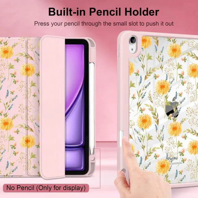 ^^ Built-in Pencil Holder: Features a dedicated slot to securely store your pencil. Specifically compatible with Apple Pencil Pro & Apple Pencil (USB-C) for the new iPad Air 11 (M4/M3/M2 models), and Apple Pencil 2nd Gen for iPad Air 5th/4th Generation. Grab your pencil effortlessly without removing the case.