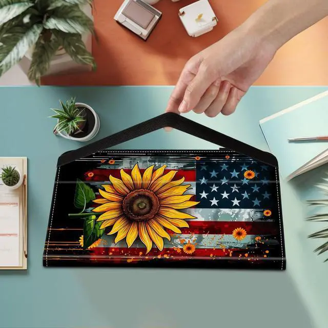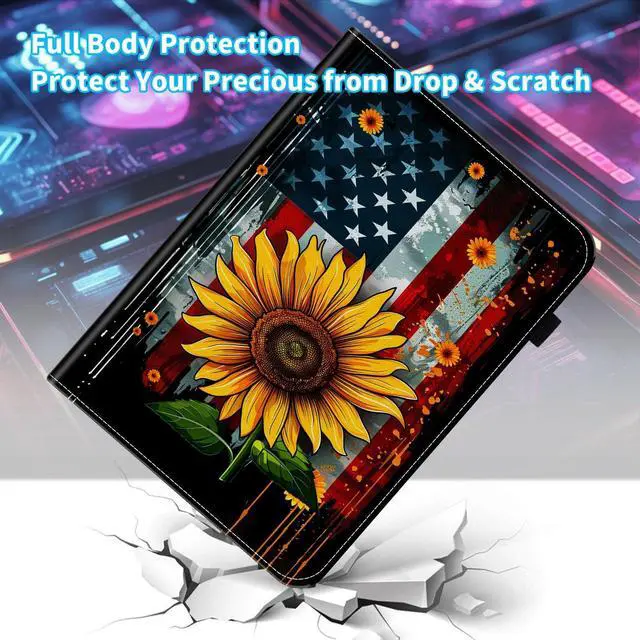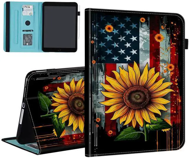 BFUKVOU Case for iPad 9th Generation/iPad 8/iPad 7, iPad 10.2 2021 2020 2019/iPad Air 10.5/iPad Pro 10.5,Card Slot PU Leather TPU Case Pen Holder Auto Wake Sleep,American Flag Sunflower