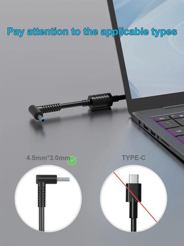 Power Jack Connector Type: 4.5 mm 3.0 mm Round Tip. (It is not fit for laptops devices requiring more than 120W) ^^ Stable Compatibility; Experience faster, more reliable charging with this Portable charger. Lightweight and compact size makes it easy to pack for business trips, vacations, or daily use at the office. Durable Construction and Made with heat-resistant materials for extended durability. The built-in chip automatically adjusts power based on your devices temperature and battery status. Less heat, safer charging, and a battery that lasts longer ^^