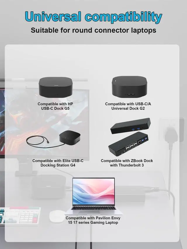 HSXIRQA Charger Compatible with HP USB-C Dock G5 5TW10UT 5TW10AA 5TW10AA#ABB 5TW10UT#ABA 26D32AA 26D32AA#ABL 5YH27AV 5YH27AV#ABA, USB-C G5 Essential Dock 72C71AA#ABA 78L94AA#ABA, USB-C/A Universal Dock G2 5TW13AA 5TW13UT#ABA 5TW13UT Docking Station, Elite USB-C Docking Station G4 TB3, Elite 90W Thunderbolt 3 Dock, Elite USB-C Dock Z9R42UT Z9R42UT#ABA, ZBook Dock with Thunderbolt 3, HSTNN-CX01 Docking Station ^^ Compatible with Pavilion 15 17 Envy 15 17 Omen 15-5000 15-5100 15-5200 series
