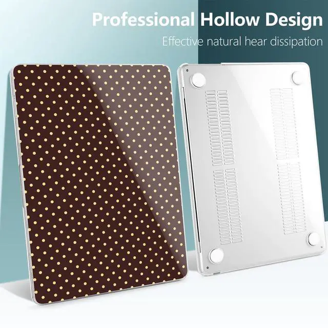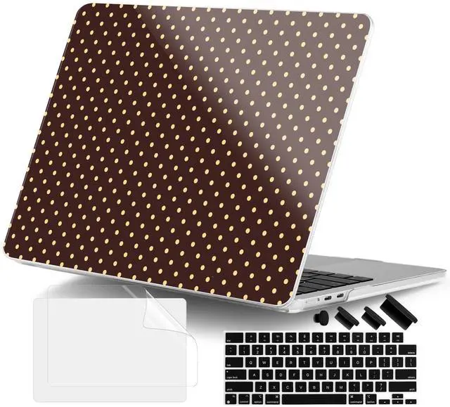 DONGKE for MacBook Air 13 Inch (13.6 Inch) Case, M5/M4/M3/M2 Chip 2026 2025 2024 2023 2022, Hard Plastic Printed Cover with Screen Protector & Keyboard Cover & Dust Plugs, Brown Polka Dots