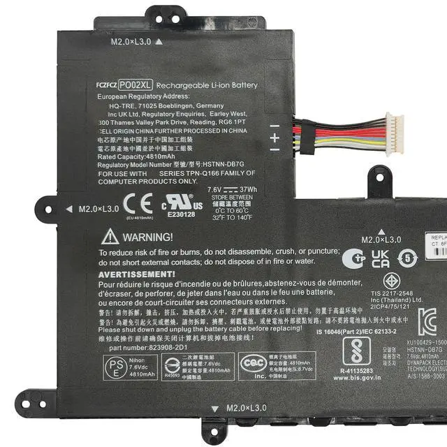 Replacement for Part Number: PO02XL HSTNN-IB7G HSTNN-DB7G HSTNN-DB-G 824560-005 824536-850 823908-1C1 823908-2C1823908-2D1 TPN-Q166 P002XL POO2XL P0O2XL P002037XL PO02037XL-PL(Note: Please kindly open your laptop back cover to confirm your original battery model is the same as listed here. Thanks! )Compatible