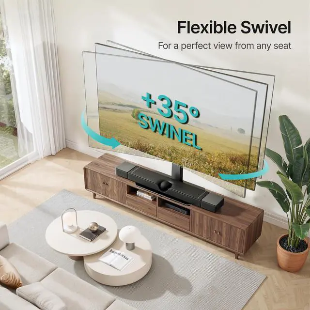 Whether used in your living room or office, this rotating tv stand helps reduce glare, minimize eye strain, and enjoy a clearer, more immersive viewing experienceno matter where you are sitting or standing in the room. ^^ AestheticThe tempered glass base not only adds a sleek, modern touch to your setup but also frees up space for your soundbar. This tv standing mount features an easy-to-clean surface, making maintenance effortless. Its mirror-like finish and cable management system keep your space organized and visually appealing, creating a clean and aesthetically pleasing look in any living room or home theater.