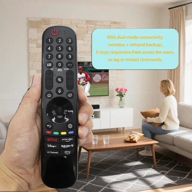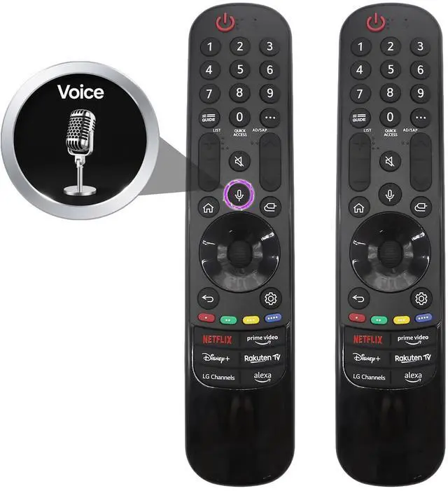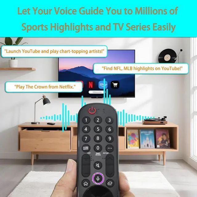 ^^ High quality material: Crafted from premium, durable materials, this remote balances sturdiness with a lightweight feelideal for daily use without strain. Its smooth, scratch-resistant surface resists fingerprints and minor impacts, staying sleek even after months of handling, while the robust build ensures it holds up to drops or bumps, keeping functionality intact for the long haul. ^^ Intelligent Voice ControlTo use Intelligent Voice Control, ensure the remote is paired Compatible with LG TV first. Locate the microphone-icon voice button, press and hold it to activate listening mode (indicated by an on-screen prompt), then speak your command clearly (e. g., Open Netflix, Turn up volume, Search for action movies) before releasing the buttonthe TV will execute it quickly. For best results, use short, clear phrases and minimize background noise.