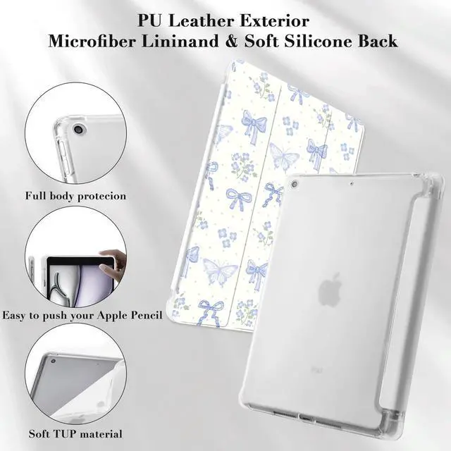 Full Protection & Trifold Stand: Hardshell back cover with flexible TPU bumper protects your iPad from shocks, drops and impacts. The triple adjustable stand allows the viewing Angle of the Pad to be adjusted at will for a variety of use cases ^^