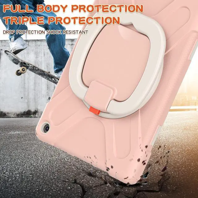 360 Free Rotatable/Multi-angle KickstandRotatable stand supports landscape and portrait mode and comfortable typing angle. The 360 Degree rotating Kickstand provides multi-angle viewing, offering a pretty convenient use experience for film watching, working and typing. Adjustable & Detachable Carrying StrapPortable Shoulder Strap allows to carry your tablet conveniently when you are at work, on a trip or outdoors. You could even hang it behind the head rest of car seat or wherever you want. Drop ProtectionReinforced Drop Protection. High-performing impact materials. The raised edge and 4 corners protection design can maximize protect your tablet, against accidental drops, shocks, and scratches.