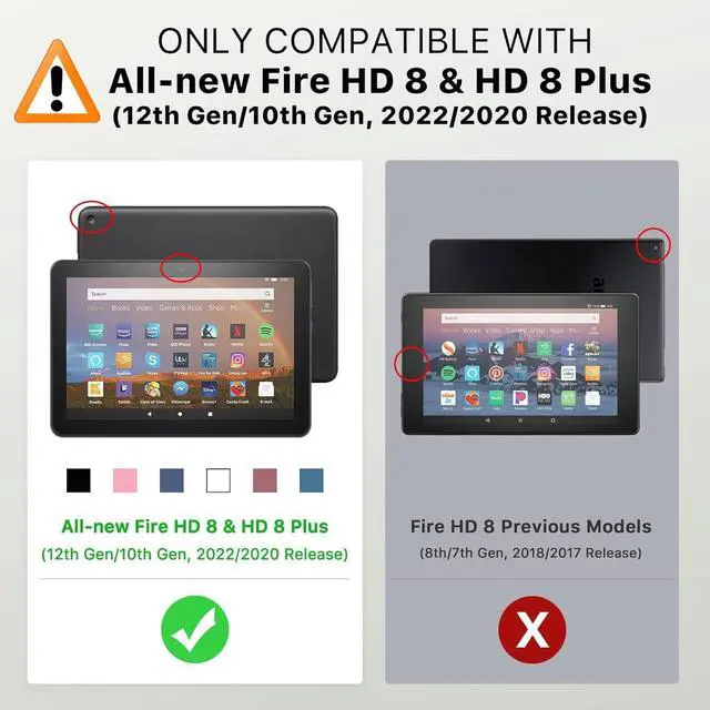 • Compatible Models:Case for All-New Kindle Fire HD 8 & 8 Plus Tablet(12/10th Gen,2022/2020 Release)Note: This case is not compatible with other model devices, please get the correct model number from the back of your tablet before purchase!