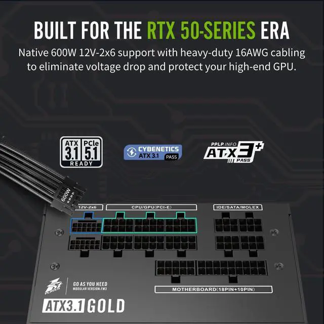 1ST PLAYER NGDP-GLD-750W PSU Fully Modular PC ATX Power Supply-Computer Power Supplies,80 Plus Gold/Cybenetics Gold/PPLP Gold,ATX 3.1/PCI-E 5.1/Silent FDB Fan with Zero RPM (Black)