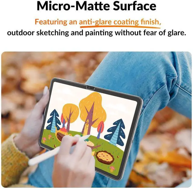 Anti-Glare: Enjoy a smooth creative experience anywhere. This protector's delicate frosted finish is engineered to combat glare and harsh light reflections on your iPad Pro 11 screen protector. Draw outdoors, your artwork will shine true, even under the sun