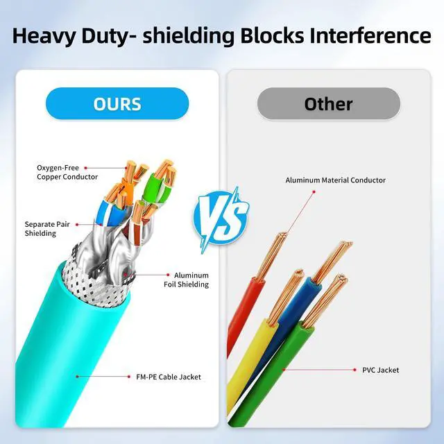 • PURE SOLID BARE COPPER & DOUBLE SHIELDING: Features 100% bare copper 26AWG conductors (NOT Copper-Clad Aluminum) with individual foil shielding (SF/FTP) plus a superior braided mesh outer shield. This robust construction ensures maximum conductivity, minimizes signal loss, and provides unparalleled protection against crosstalk (XT) and electromagnetic interference (EMI/RFI) for a rock-solid, stable connection.