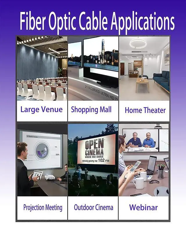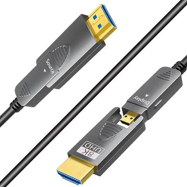 Support HDR, HDCP 2.2 2.3, Dynamic HDR, eARC, 3D video display. ^^ 3>HDMI 2.1 cable is widely compatible with all 8K/4K TVs on the market, OLED TV, 8K UHD TV, CD, DVD, Projector, laptop and HDMI-enabled devices. ^^ 4>Flexible Durability, Plug and Play. Fiber optic long hdmi cable is much thinner and lighter with only outer diameter 0.18 inch. No need external power, Plug and Play. Easy for in wall installation. CL3 UL rated. 24K gold-plated connectors. Minimize interference and no black screen, ensure image/sound quality without signal loss and digital timing errors, provide amazing clarity and real sound for your ultimate viewing experience.
