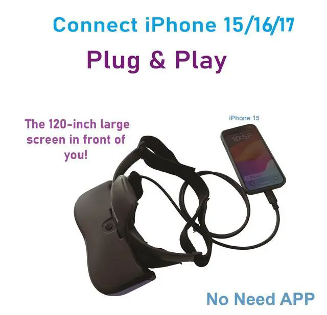NOT VR. These are video glasses which are great to watch regular 2D movie privately. Type-C input, easy connect to i-Phone15/ Pad/ Android mobile phone directly, Plug and Play, no need APP. It's just a video Display, Monitor, Personal Cinema, HMD, the devices by itself doesn't work, need to plug in the Type-C port to your devices to watch movies, videos. ^^ Kindly follow the instruction manual provided with the product and contact the seller in case of any further queries. If you want to connect to a mobile phone, Notice: Please make sure that your mobile phone does have USB Type-C video output function. ^^ BIGEYES H1 USB-C are equipped a 1280x720 LCD for each eye. support 1280*720p and 1280*720i video format. ^^ Support adjustable inter-pupillary distance; compact, lightweight for long term comfort wearing; also support nearsighted between 0 ~ 5.0 D