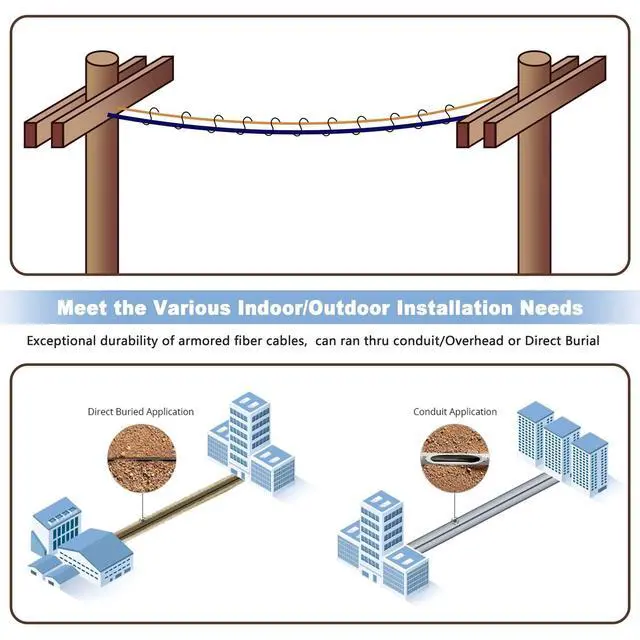 • Duplex OM3 Multimode Armored Fiber Optic Patch Cable: Use for Indoor and outdoor applications
