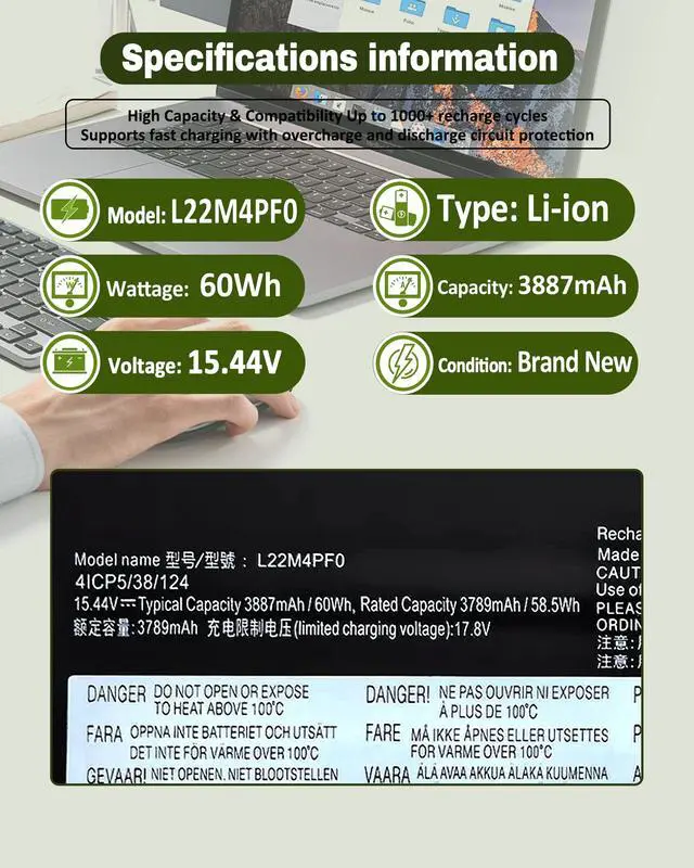 Package Contents: 1 Replacement Battery + 1 Detailed Instruction Manual + 1 Professional Screwdriver Kit ^^ Compatible Part Number L22C4PF1 SB11J63615 5B11J63614 SB11N45302 5B11N45328 L22D4PF1 SB11J63618 5B11J63619 SB11N45327 5B11N45340 L22M4PF1 SB11J63620 5B11J63623 SB11N45296 5B11N45298 L22C4PF0 L22D4PF0 L22M4PF0 ^^ What You GetA complete package for easy installation: One Laptop Battery, One screwdriver set, One User Manual; For your peace of mind, we offer 30-day returns and a 12-month replacement warranty. Our customer support team (responding within 24 hours) is always ready to assist. Visit our product page for more details, and don't hesitate to contact us if you need help.