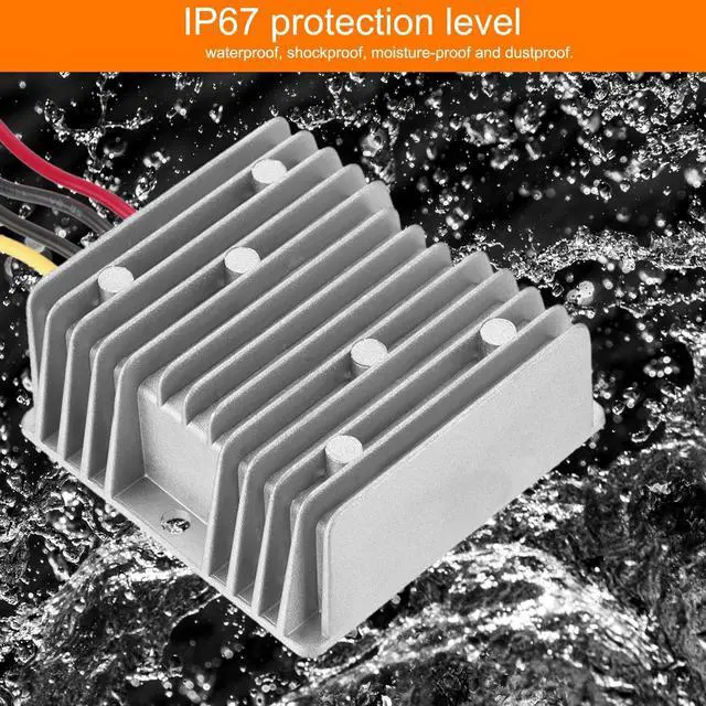 L*W*HPackage contains: 1pcs x DC Power ConverterAre there any advantages of the product? The DC converter has a high conversion rate, over current, over voltage, short circuit, over temperature protection, strong anti-interference ability, stable and reliable, strong anti-interference ability, and a conversion rate of up to 90%. The DC to DC converter has an aluminum alloy shell and a more efficient heat dissipation capacity. Epoxy resin and silicone potting, IP67 protection level, waterproof, shockproof, moisture-proof and dustproof. Power converter transformer has strong adaptability to the working environment and can output normally in harsh environments of -20C~85C. How to use it?