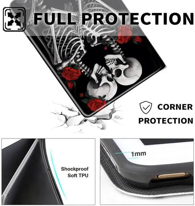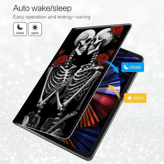With: for iPad 9th generation 10.2" 2021 Releasefor iPad 8th generation 10.2" 2020 Releasefor iPad 7th generation 10.2" 2019 ReleaseWhat Do You Get1 x Rose Skull Skeleton Tablet Case24 Hours friendly service and helps solve your problems