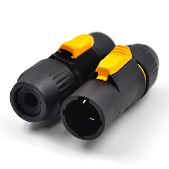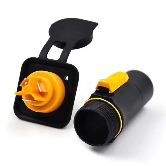 Discover superior power connectivity with this professional-grade PowerCon locking connector. Built to withstand challenging outdoor conditions, this 20-amp rated chassis connector features IP65 protection, ensuring reliable performance in wet and dusty environments. The secure locking mechanism prevents accidental disconnections, making it ideal for outdoor events, installations, and professional applications where dependable power distribution is crucial. The rugged construction and weatherproof design make this connector a perfect choice for outdoor lighting systems, sound equipment, and other professional gear that requires consistent power delivery in all weather conditions. The chassis-mount design allows for easy integration into equipment panels and enclosures, while maintaining the waterproof seal.