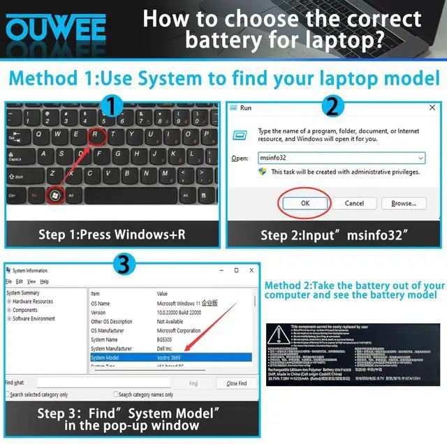 Welcome to OUWEEOUWEE are mainly sold adapter, laptop and Tablet battery, power bank, etc. Before placing your order, we highly suggest you to open the back case of your latptop and check out the exact part number of your laptop's original battery. 1.