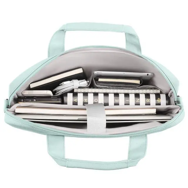 ^^ Roomy Compartments: This business laptop bag offer a separated and large spaces for your files, magazines and two extra front pockets for your laptop accessories such as power adapters, cables, mouse, it's roomy enough to meet what you want.