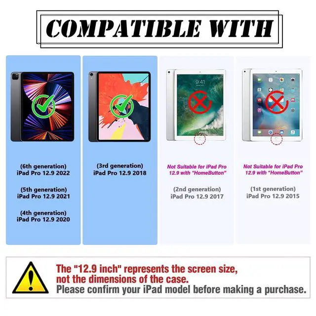 Compatibility Check First: Designed for iPad Pro 12.9" 3rd6th Gen (20182022). NOT for 1st or 2nd Gen if your iPad has a Home button, this case will NOT fit ^^
