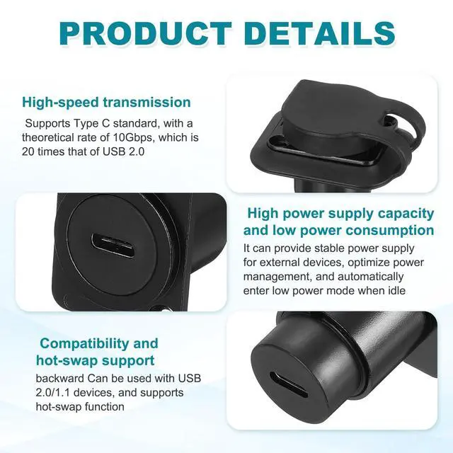 Compatibility and hot-swap support: backward Can be used with USB 2.0 / 1.1 devices, and supports hot-swap function ^^ No welding or installation tools are required. The installation can be completed by fixing with nuts, which saves space and Can be used with industrial cabinets, home walls and other scenes. ^^ The direction must be aligned when plugging and unplugging to avoid forced insertion that may cause deformation of the pins.