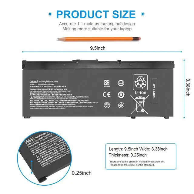 COMPATIBLE P/N: SR04XL SRO4XL 917678-171 917678-1B1 917678-2B1 917724-855 HSTNN-DB7W HSTNN-IB7Z HSTNN-IB72 TPN-C133 TPN-C134 TPN-Q193 SR03XL SR03052XL L08934-2B1 L08934-1B1 L08934-2C1 L08855-855 TPN-C133 TPN-C134 TPN-Q194 HSTNN-DB8Q HSTNN-IB8L.