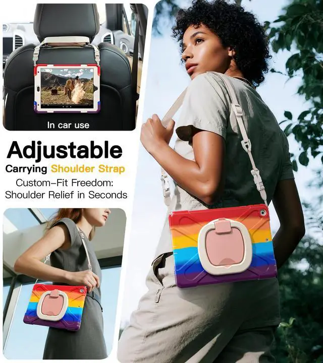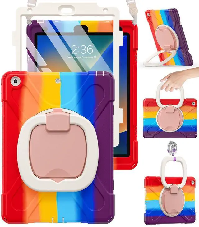 Number: A2197 A2200 A2198), not fit any other model. Cases allows easy access to all features (Cameras, Speaker, Ports and Buttons) ^^ Made of hard PC and shock absorbing Silicone, its three layer structure design provide a good full body protection from drop bumps, and shock; Built-in Anti-scratch Screen Protector protect your 10.2 inch device from being scratched ^^ 360 Degree Rotating /180 Degree Folding Handle Grip provide a convenient way to hang your iPad 9th Generation case whilst in kitchen, washroom, bedroom or grip and carry your iPad 8th/7th Generation case while on the go ^^ Adjustable Carrying Shoulder Strap allows you to carry your iPad 9th/8th/7th Gen case with hand free; Built-in Pencil Holder and Pencil Cap Holder will store your iPad Pencil securely with our case on. Please note that Apple pencil is not include ^^ 360 Degree Rotatable Stable Kickstand offer different angles (type or view) to display your iPad 10.2 inch case 2021/2020/2019 steadily