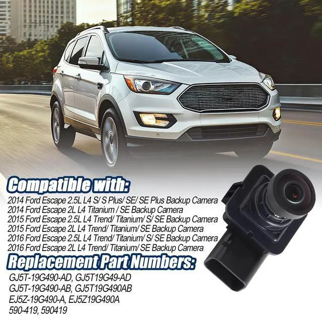 Play: Compatible with Escape park assist camera Replace for part number GJ5T-19G490-AD, GJ5T19G49-AD, GJ5T-19G490-AB, GJ5T19G490AB, EJ5Z-19G490-A, EJ5Z19G490A, 590-419, 590419, Simply mount it on your car's rear bumper or license plate, connect it to the display, and you're ready to go ^^