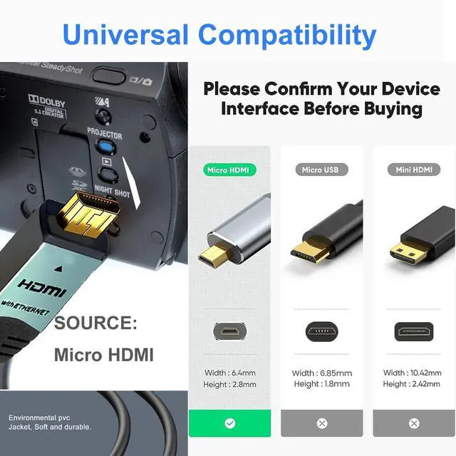 Ultra HD 4K Resolution Delivers stunning 4K@60Hz video output, ensuring crisp visuals for gaming, streaming, and professional presentations. ^^ High-Speed Data Transfer Supports HDMI 2.0 standard, 18Gbps bandwidth, and enables seamless transmission of high-resolution audio and video without lag. ^^ Safe & Stable Connection- The gold-plated connectors and tight-fitting design ensure minimal signal loss and a stable connection with no loose or disconnected issues. ^^ Broad Compatibility Works perfectly with laptops, cameras, tablets, monitors, and projectors (e. g., DSLR, Raspberry Pi, etc.