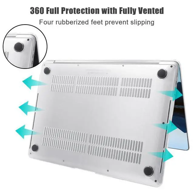 ^^ Design & Function: Two pieces snap-on design, easy to install and take off. The precise cutting design allows you to access all the ports of your macbook Pro14 inch 2026-2021 release. Fully vented for safe heat disbursement. The two rows vent slots at the bottom of the case can easily keep your Pro14 inch M5 M4 M3 M2 M1 device cool. The four raised rubber feet keep your laptop stable and safe. ^^ 4in1 Bundle