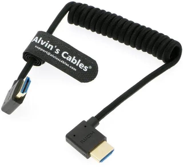 Alvin's Cables 8K 2.1 HDMI High Speed Braided Coiled Cable Right Angle to Right Angle for Atomos Ninja V, Portkeys BM5, for Feelworld Monitor, for Canon C300, Z CAM E2, Sony FS5^^ FS7^^ A7S3 Cameras