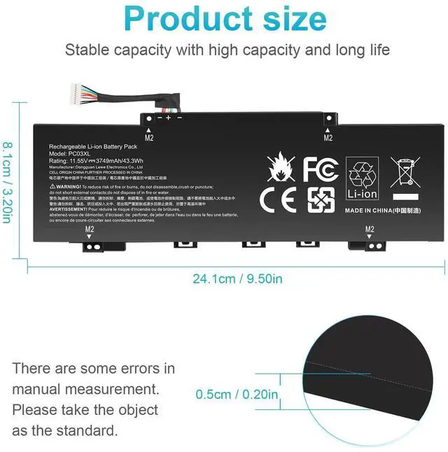 Color: Black, (Please open the back case of your laptop and check out the exact part number of your laptop's original battery Before placing your order) Any questions you can contact with us via "Your Orders" tab in account, we will deal with it for you within 24 hours. ^^ Replacement for Part NumberPC03XL M24648-005 PC03043XL HSTNN-OB1W M24421-271 M24421-AC1 TPN-DB0E PCO3XL 3ICP5/68/73 ^^