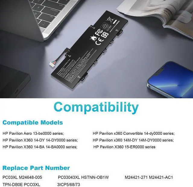 Compatible Models: for HP Pavilion X360 14-DW 14-DW1023DX 14-DW0021NA series; for HP Pavilion X360 14-DY 14-DY0016NA 14-DY0018NF series; for HP Pavilion x360 14 14M-DY 14M-DY0000 series; for HP Pavilion X360 14-DH 14-DH1937ND 14-DH1153NG series; for HP Pavilion X360 14-BA 14-BA110NR 14-BA190NZ series; for HP Pavilion X360 14-CD 14-CD0004LA 14-CD0520NA series; for HP Pavilion X360 14-EK0000 14-EK0033DX 14-EK0013DX series; for HP Pavilion X360 15-ER 15-ER0056CL 15-ER0950ND series ^^ All products are Certified by CE, FCC for safety. Strict guidelines for compatibility, and standards compliance for environment safety.