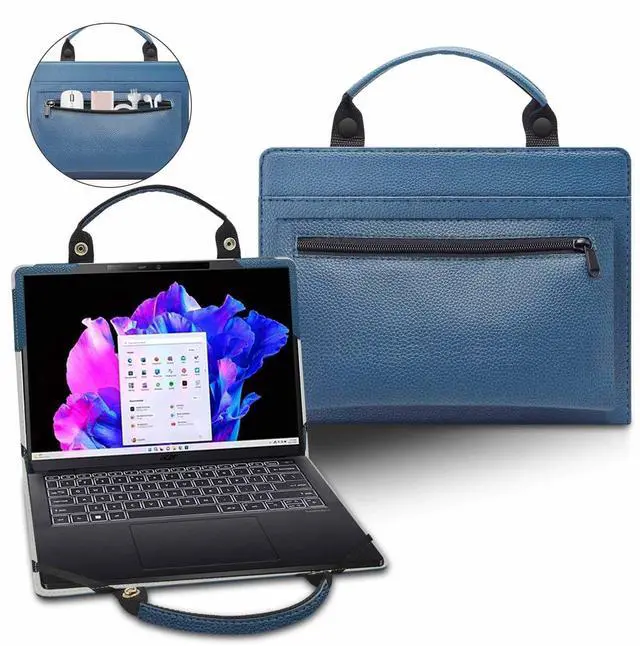 4: High Quality Material & Fashion Design: Built from premium synthetic leather exterior and soft microfiber interior-snug fit and durable; handle and small bag design, fashionable and practical, being with excellent portable performance with special {small bag} and pocket for power adaptercordmousecashcard or some other accessories(This case not support "Tablet model").