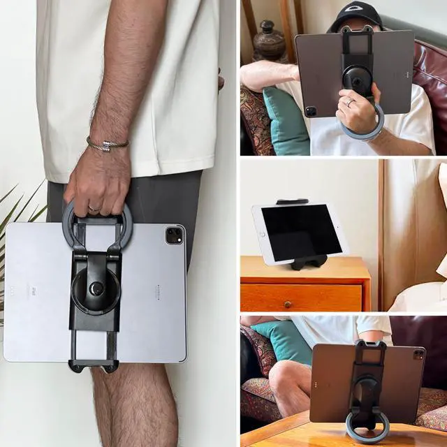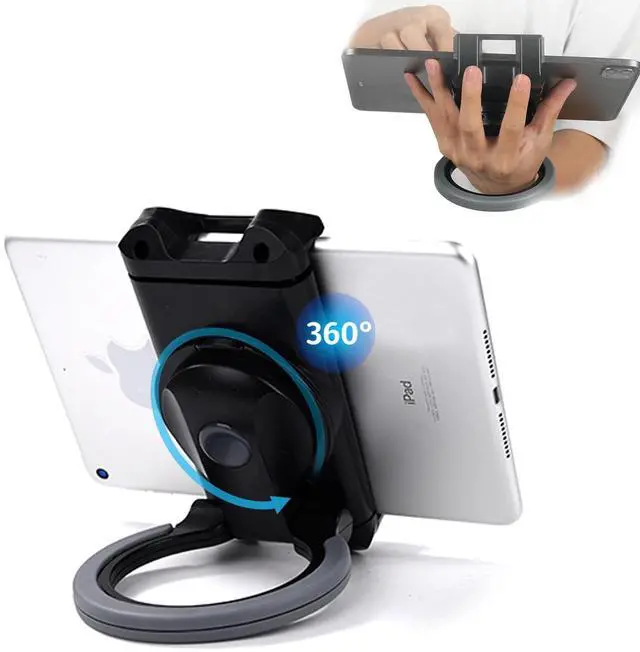 ADJUSTABLE TABLET HAND GRIP HOLDER: The design of 360 rotatable bracket holder + 180 folding arm offer all-around ergonomic free angles in both landscape and portrait views for comfortable typing, displaying, and drawing. This tablet hand holder is great for interacting with customers, meeting with colleagues or presenting products and services at a showroom.