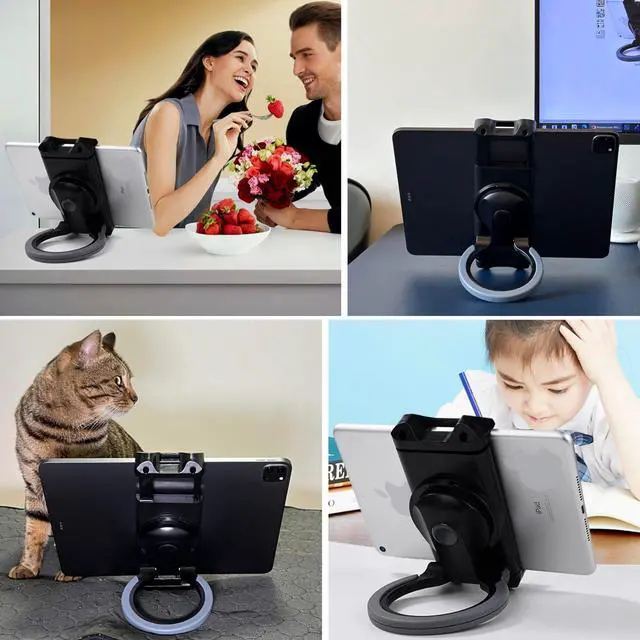 ^^ Wide Compatibility: This Tablet Stand Holder Universal Stretchable Holder is Applicable to 4.7 ''- 12.9 '' Devices Compatible with all devices from 3.5 - 12.9 inches, such as iPad 10th generation, iPad Air 5/4, iPad 10.2, iPad Pro 11/ 12.9, iPad mini 6/5, Samsung Tab S6/S5e, iPhone 11 Pro XS Max /Xr and more. The stand is friendly to thick protective cases and can be used directly even if the device comes with a heavy duty case. stand.