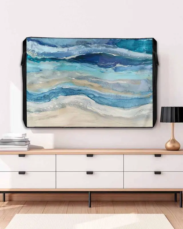 Lsrtoss Outdoor TV Cover - 52-55 Inch Weatherproof, Blue Coastal Outdoor TV Enclosure with Zipper & Roll Up Front Flap