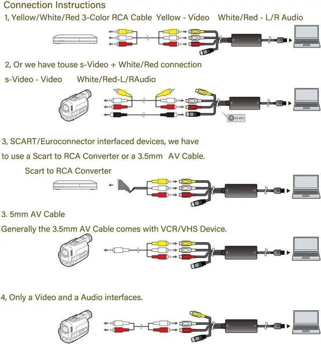 Perfect for video editing, streaming, and archiving old tapes with clear sound quality. ^^ Wide Compatibility & Versatile Use Works with VHS players, camcorders, and more. Ideal for converting home movies, recording gameplay, and creating digital archives. Supports most video editing software. ^^ Include software for seamless video conversion. The compact design makes it easy to use at home or on the go. Start digitizing your memories today!