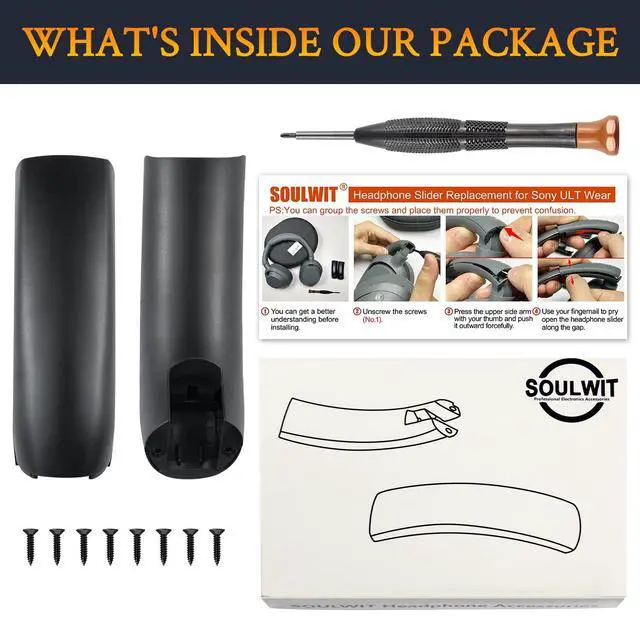SOULWIT Headband Side Cover Slider Outer & Inner for Sony ULT WEAR/WH-ULT900N (WHULT900N) Over-Ear Noise Canceling Bluetooth Headphones, Replacement Head Band Repair Part Accessories Kit - Black