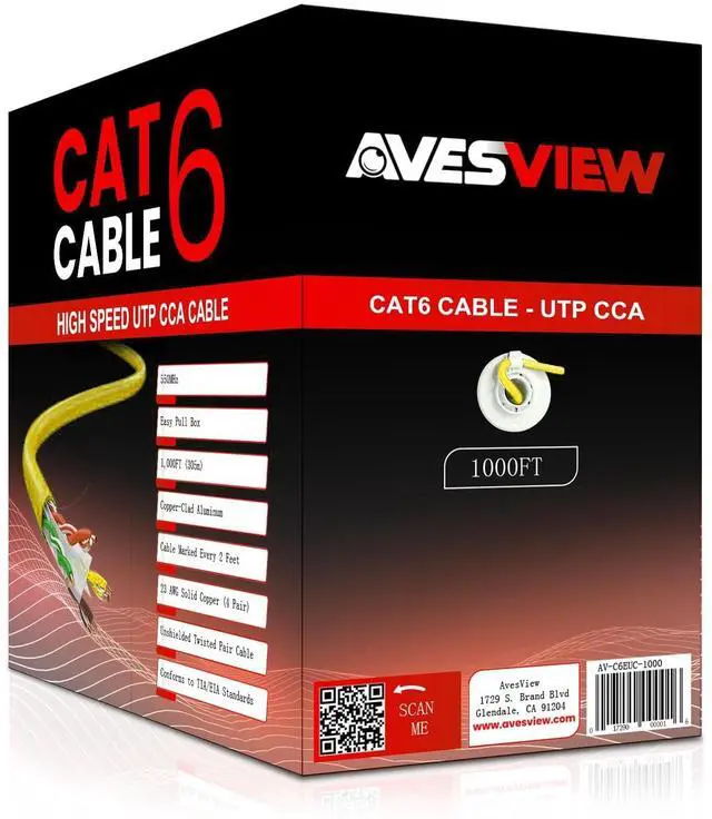 Dependable Networking for Homes & Small Offices This CAT6 1000FT bulk cable is designed for non-enterprise networking applications that require reliable performance at an affordable cost. ^^ Short-Distance 10GbE Capability The CAT6 Ethernet Cable 1000FT supports up to 10GbE speeds on short cable runs up to 30 meters and provides 1GbE performance up to 100 meters. ^^ Affordable Networking Solution This CAT6 Ethernet Cable 1000FT offers a cost-effective alternative to solid copper cabling, making it a practical choice for homeowners and small businesses needing dependable wired internet. ^^ Not Intended for Enterprise or Data Center Use This CAT 6 1000FT cable is not recommended for professional networking environments or high-demand commercial installations.
