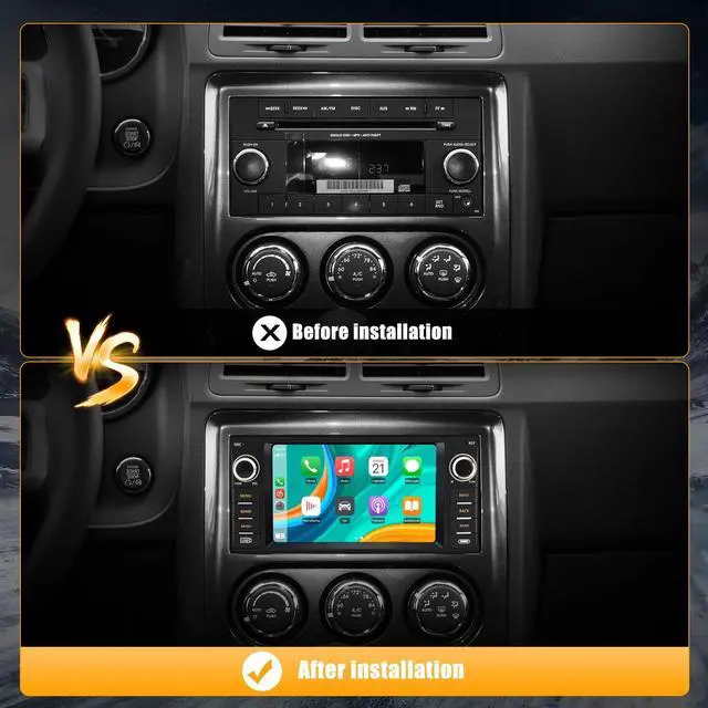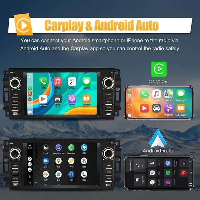 Advanced technology ensures clear and crisp sound quality, allowing you to immerse yourself fully in your favorite music or radio programs. ^^ Wireless Carplay Android AutoThis Dodge Ram radio is equipped with the latest technology of wired/wireless CarPlay and Android Auto. You can choose to connect your phone to access your phone contacts, emails, notifications, map navigation, music, videos and other information, and realize voice control. The wired Android car is connected via a data cable, and the wired Android car car system can closely integrate the user's Android phone and player.