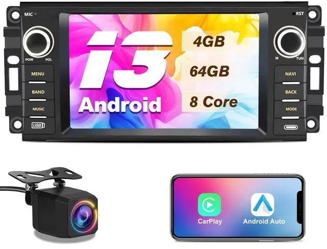 Applicable Car ModelsFor Jeep Wrangler/Unlimited 2007-2018; For Jeep Compass 2009-2016; For Jeep Patriot 2009-2016; For Jeep Grand Cherokee 2005-2011; For Jeep Liberty 2008-2011; For Jeep Commander 2008-2011; For Chrysler Sebring 2007-2010; For Town&Country 2007-2010; For Dodge Grand Caravan 2011-2014; For Dodge Charger 2008-2010; For Dodge Ram Pickup 1500/2500/3500 2009-2012. ^^ Android System UpgradeFor This android radio is specially designed for Jeep Wrangler JK Compass Grand Cherokee Dodge Ram. UPGRADED Android 13 operation system + 8 Core CPU + 4G RAM +64GB ROM, you can enjoy an enhanced audio experience.