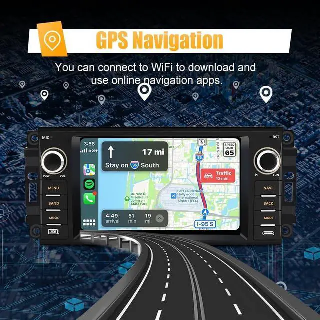 ^^ GPS Navigation & WiFi ConnectionFor Jeep Wrangler JK, this radio supports online maps. After connecting to WiFi, you can use GPS Navigation anywhere. This Android radio allows you to install or delete Android apps from the Application Store, just like a smartphone. ^^ Bluetooth & FM RadioFor Ram 1500 radio with Bluetooth, supports phonebook synchronization, hands-free calling and mobile music streaming. Built-in microphone can pick up your voice, and the car speakers allow you to hear the other party's voice. With FM radio, you can transmit the radio to the car stereo via FM, enjoy the original car audio, you can listen to real-time traffic, news broadcasts, weather forecasts, etc.