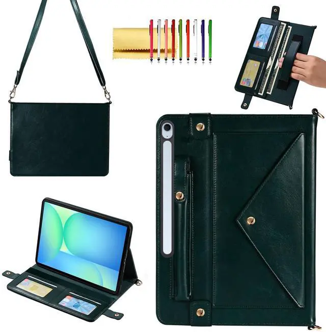 This shoulder bag case is exclusively designed for 13.1 -inch Samsung Galaxy Tab S10 FE+ Plus Tablet SM-X620/ SM-X626 (2025). Full access to all buttons, cameras and jacks. Please check the model number on the tablet's Setting before purchasing. ^^ Premium Material - Made with synthetic PU leather exterior and microfibre lining, provides front-to-back protection against fingerprints, dust, scratches and bumps. ^^ S Pen Holder - This multi-functional cover has a thoughtful design of a secure button pocket to store your S Pen so that you don't need to buy extra stylus cases while on the go.